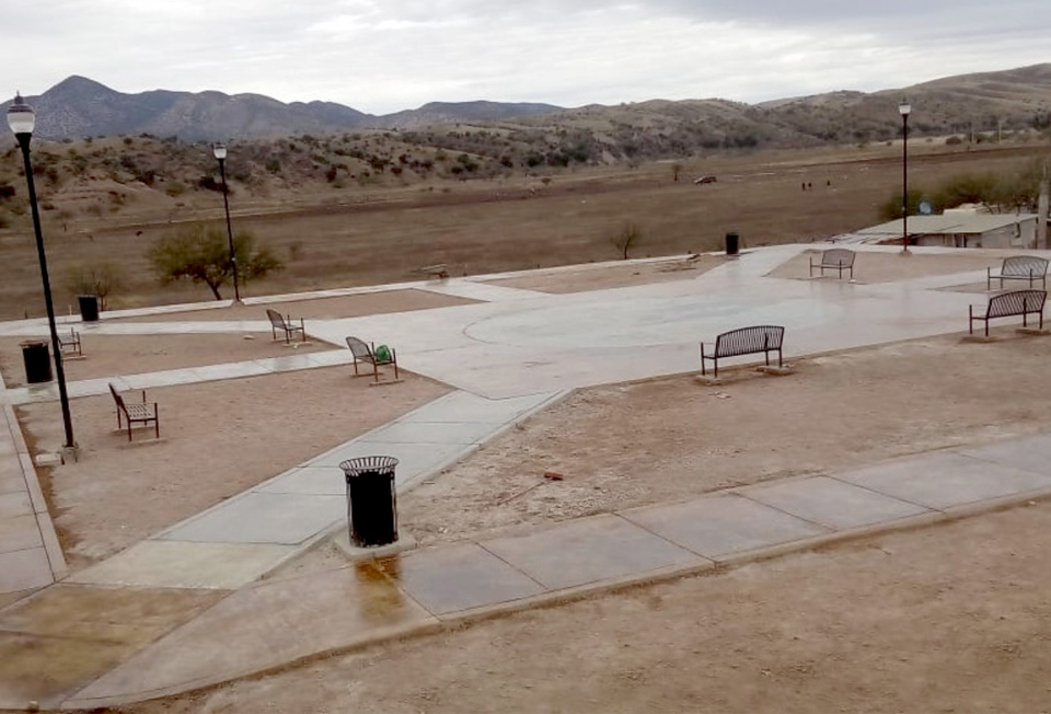 Construcción de 646.25 m2 de losa de concreto para plaza pública de la localidad de Milpillas, incluye plataforma, sistema eléctrico y mobiliario, en el municipio de Santa Cruz, Estado de Sonora.