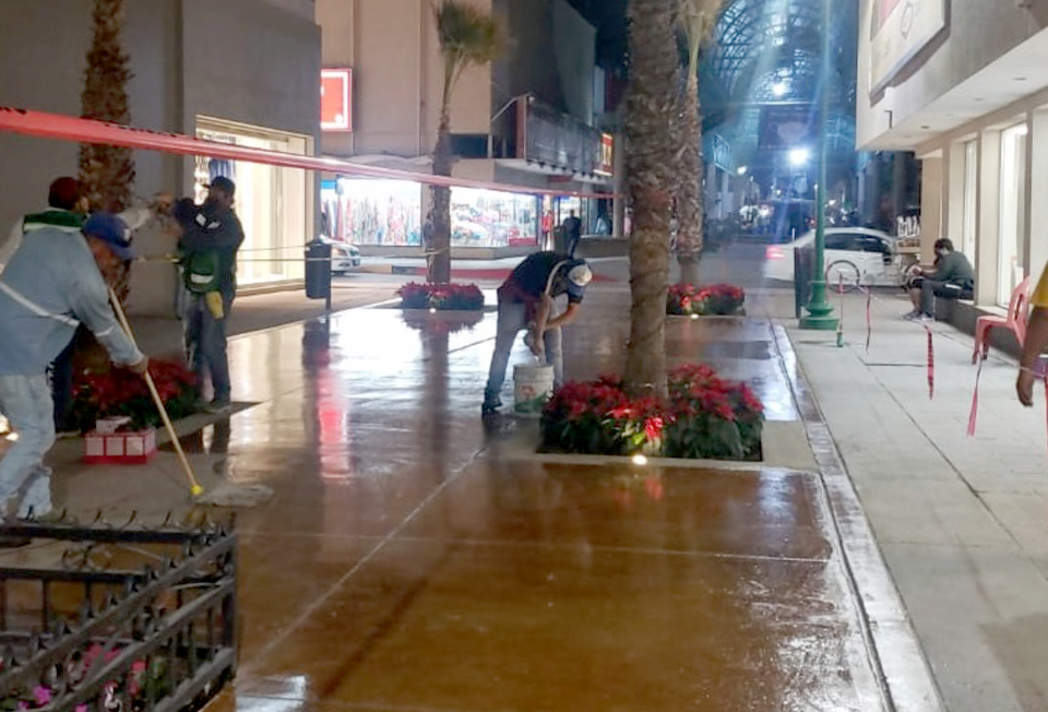 Construcción de andador Miguel Ángel Figueroa a base de concreto hidráulico acabado óxido, sistema eléctrico, jardinería y mobiliario, entre Serdán y Elías Calles, en Hermosillo, Sonora.